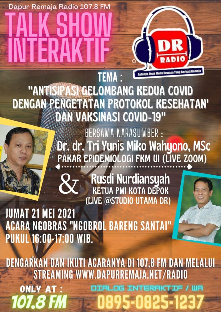 Talk Show Interaktif yang digelar Dapur Remaja pada frekuensi 107.8 FM akan mengupas bagaimana mengantisipasi gelombang kedua Covid-19 dengan program vaksinasi dan disiplin protokol kesehatan.