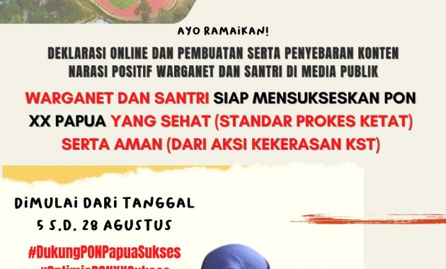 Komunitas FPMSI juga mengajak dan mensosialisasikan PON XX Papua di jagat media sosial lewat aksi posting konten informasi positif seputar PON XX dan kegiatan deklarasi virtual warganet dan kalangan santri dalam rangka mendukung suksesnya penyelenggaraan PON XX Papua, dengan isi deklarasi sebagai berikut.