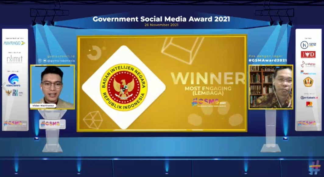 Torehkan Sejarah Digital, Akun Media Sosial BIN Dapat Penghargaan Most Engaging ajang Goverment Social Media Summit (GSMS) tahun 2021
