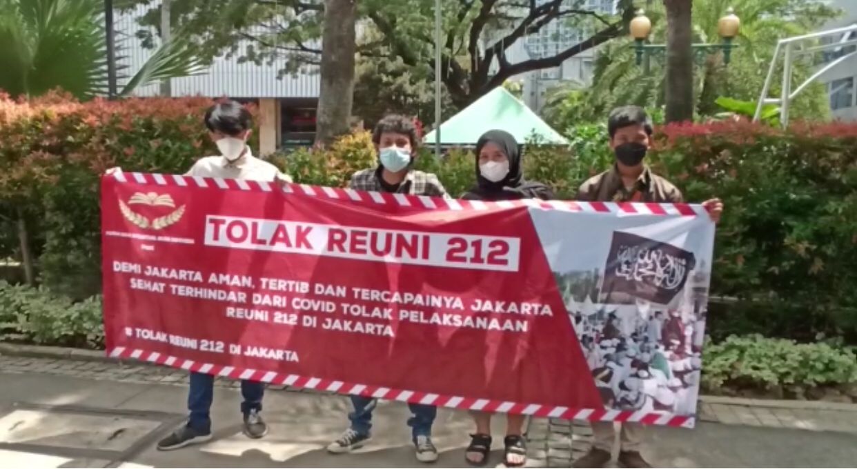 Masyarakat tegas menolak Reuni 212 yang sudah tidak relevan untuk dilaksanakan. Acara tersebut hanya akan memicu gelombang ketiga Covid-19 seiring adanya varian baru virus Corona.