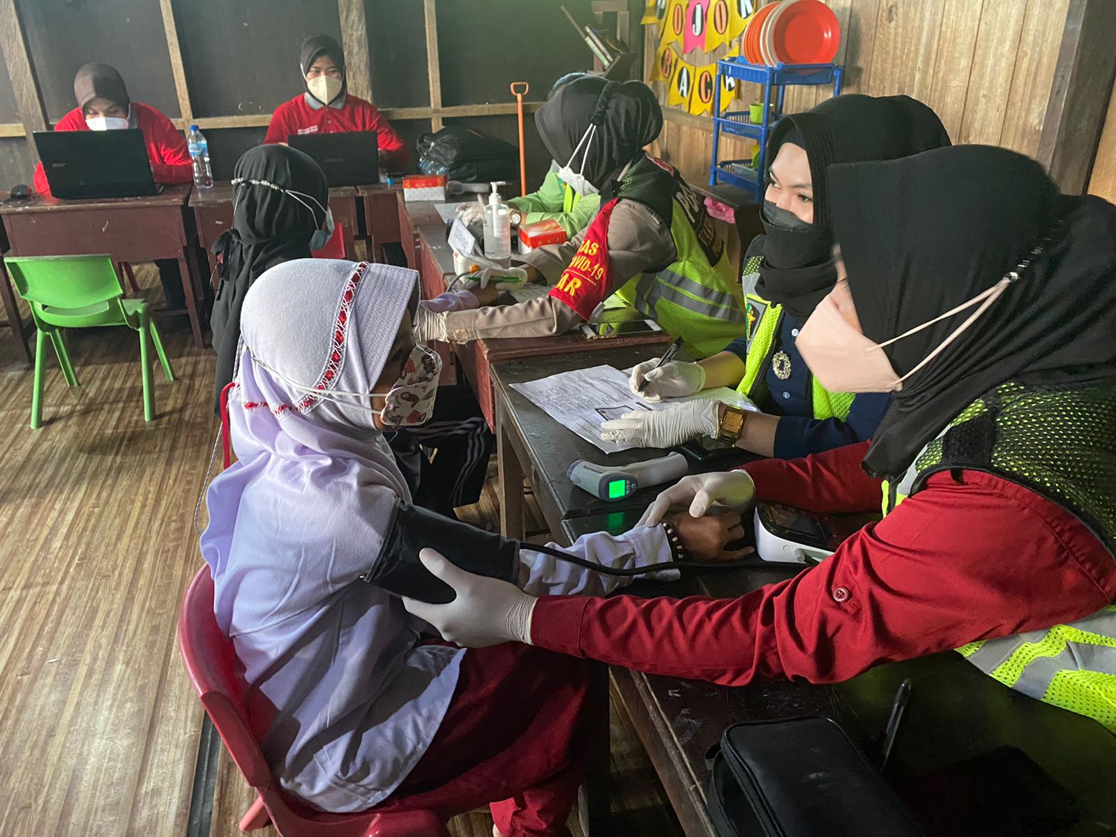 Untuk pertama kalinya, Vaksin Covid-19 bagi anak usia 6-11 tahun di Kalteng ini diberikan kepada para santri di Pondok Pesantren Bina Insan, Bamban, Kelurahan Sidorejo, Kecamatan Arut Selatan, Kabupaten Kotawaringin Barat, Selasa (14/12/2021).