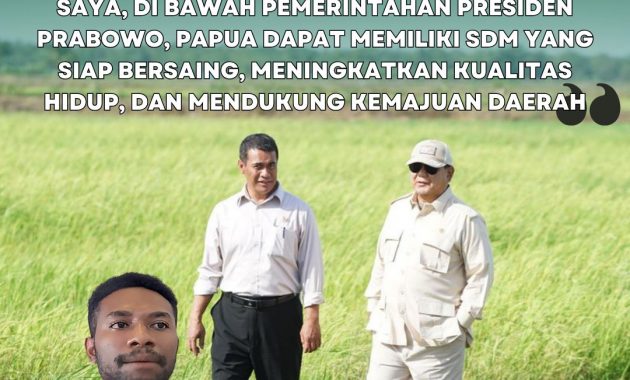 Jayapura – Pemerintahan Prabowo Subianto dan Gibran Rakabuming Raka terus mendapat apresiasi positif dari berbagai lapisan masyarakat, khususnya dari warga Papua. Komitmen mereka dalam memajukan wilayah timur Indonesia ini semakin terlihat melalui berbagai program pembangunan yang berdampak langsung pada kesejahteraan masyarakat Papua.